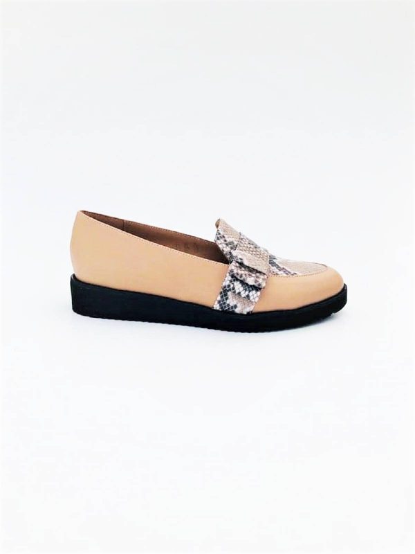 Mocasini dama din piele naturala, Goldie, nude snake
