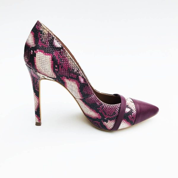 Pantofi cu toc din piele naturala, culoare mov de cea mai buna calitate. Modelul este realizat manual in atelierele noastre din Romania. Piele naturala interior si exterior. Calapod confortabil, design autentic. inaltime toc: 10 cm. Modelul poate fi confectionat si pe alte tipuri de piele dar si pe alte culori preferate. Se poate realiza exclusiv pentru dumneavoastra, la comanda, in decurs de 5-10 zile lucratoare.