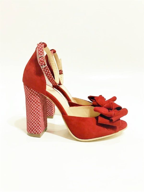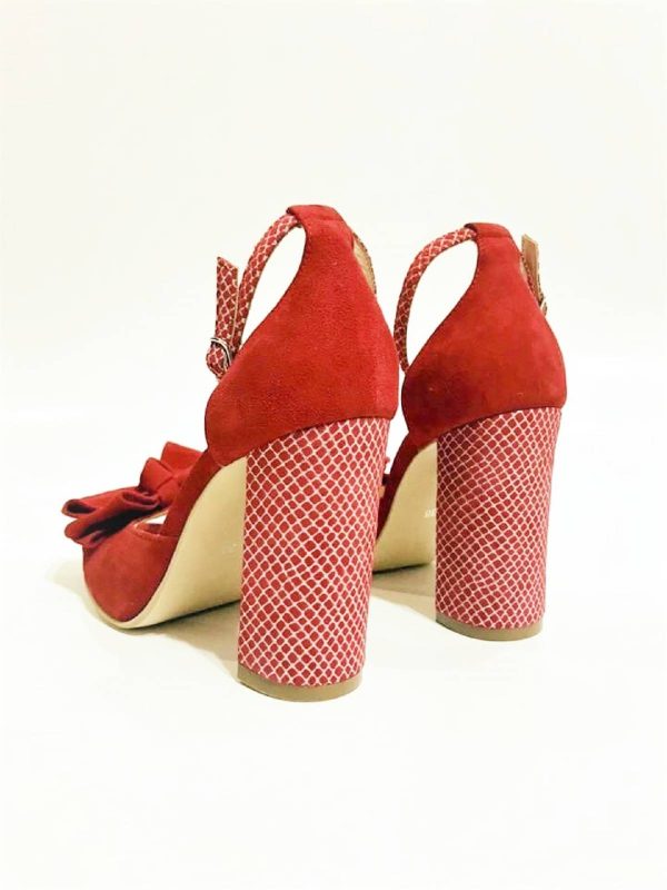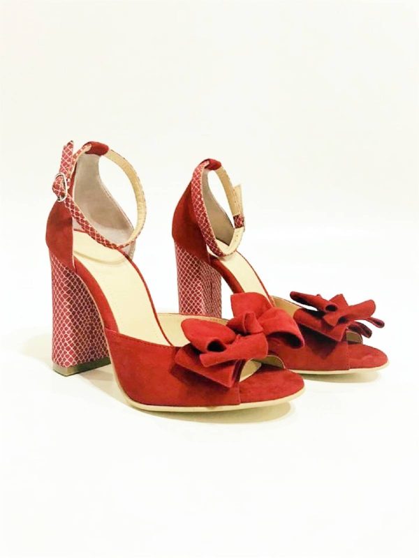 Sandale dama cu toc gros din piele naturala rosu-velur realizate manual in Romania.