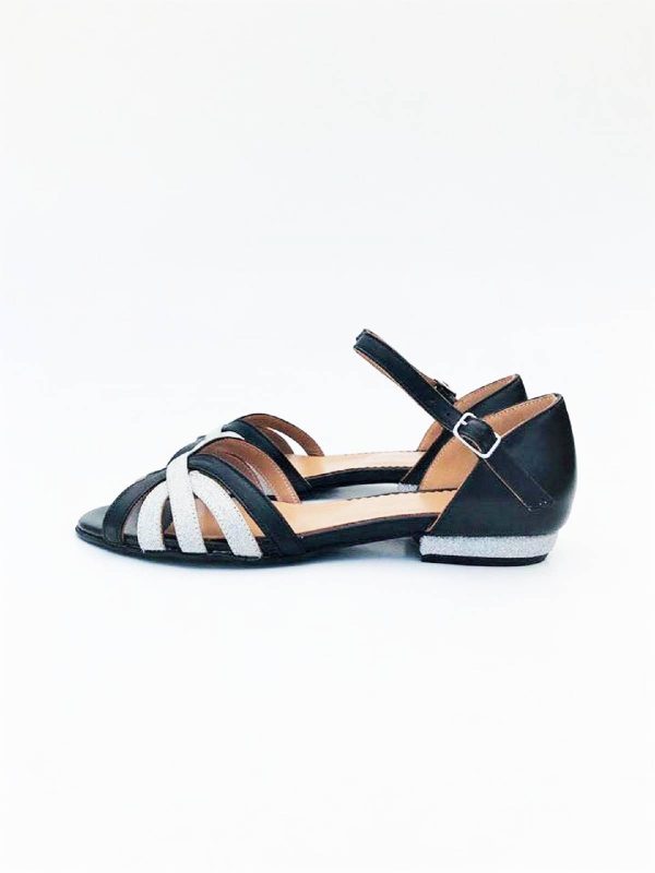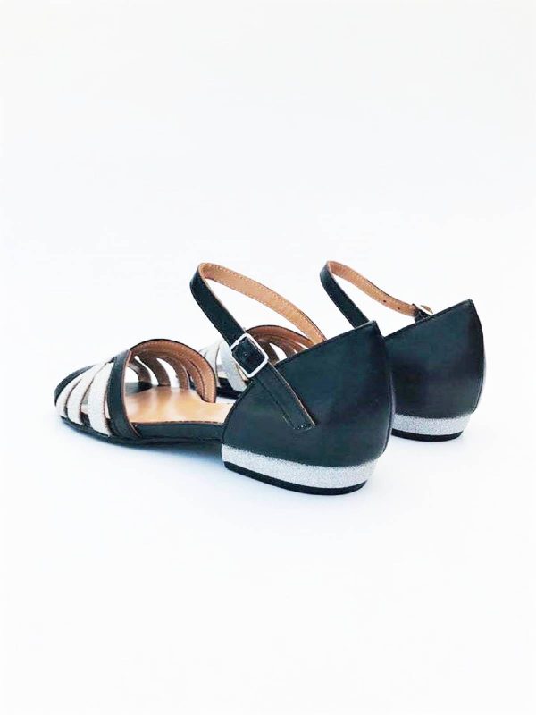 Sandale dama din piele naturala negru plus glitter argintiu realizate manual in Romania.